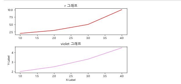 1) 'r', 'violet' 그래프를 나눠서 그리자(subplot)